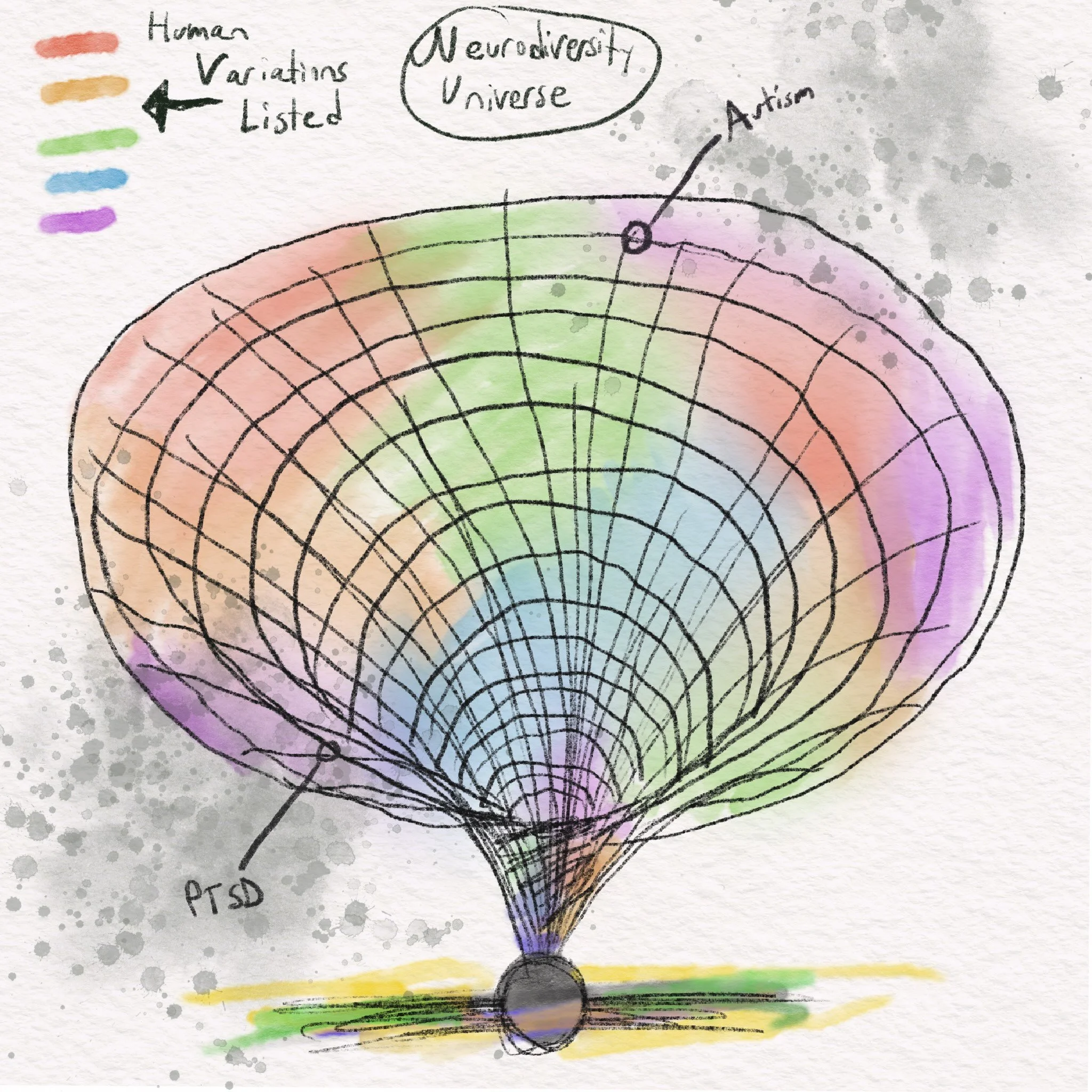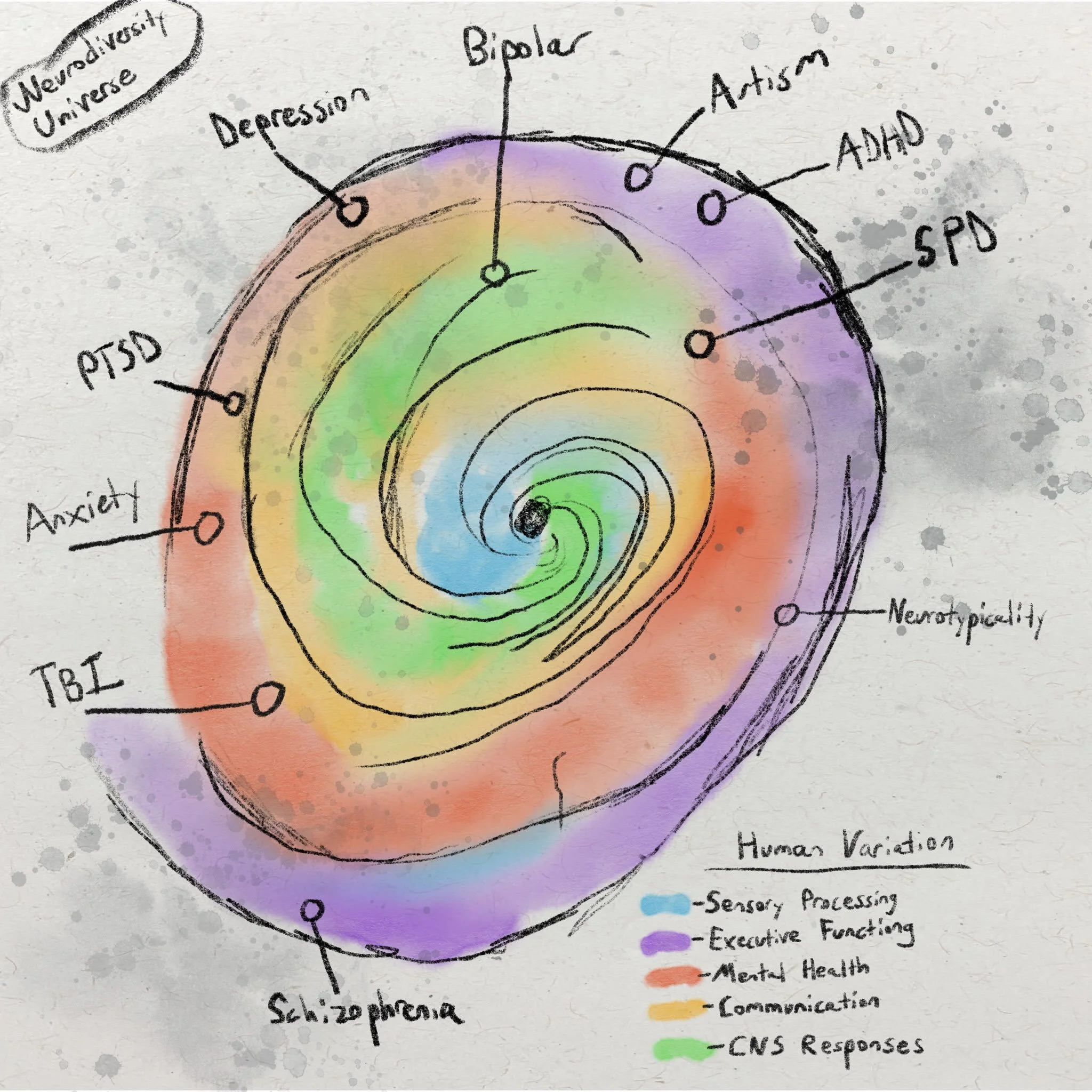 -Please know this illustration is not meant to cover every single neurodivergence, and I did include “Neurodivergence X” as a placeholder for the future new Neurodivergent universes we discover.
