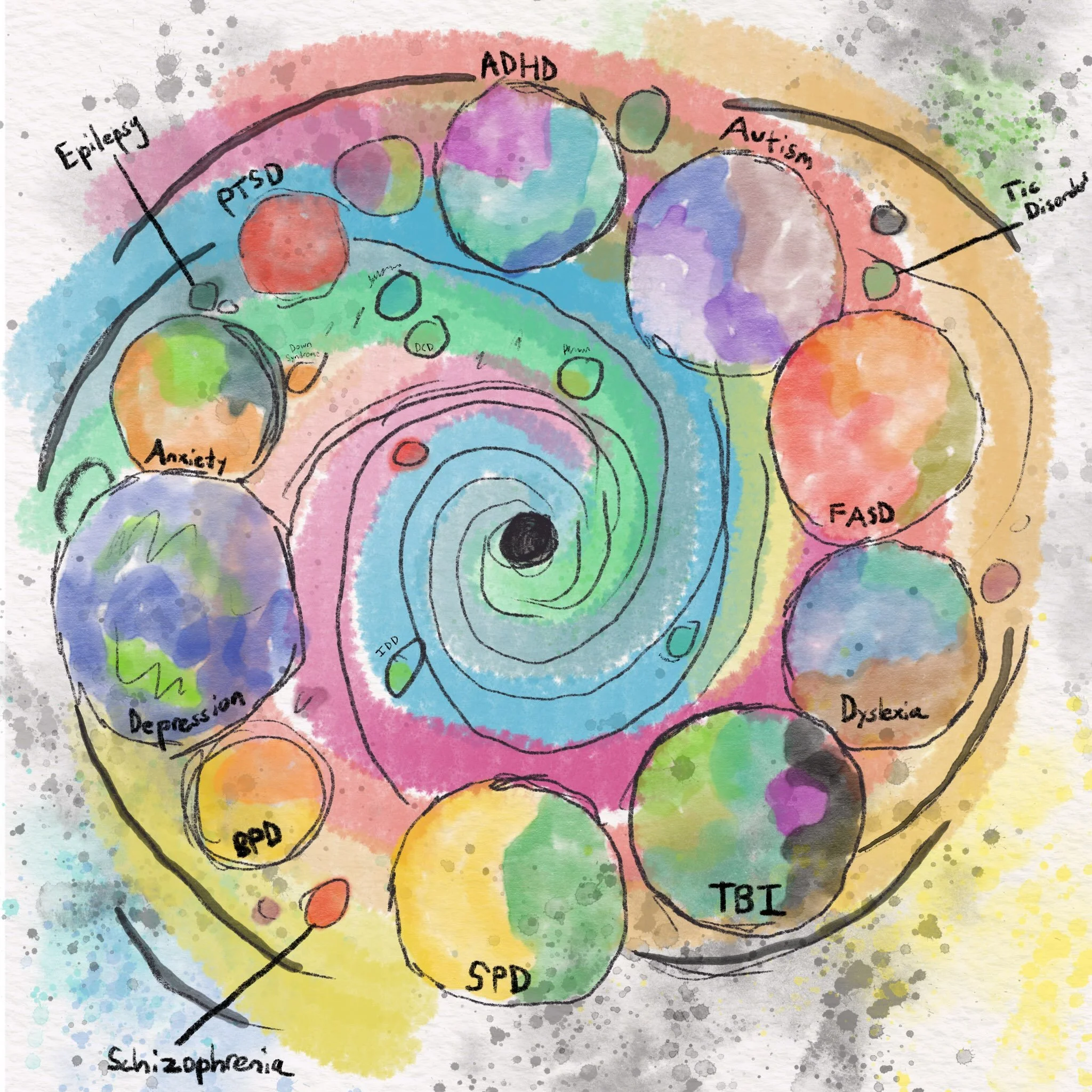 Oftentimes we hear of neurodiversity being identified as a “spectrum” or an “umbrella”; for me as a multiply Neurodivergent person, those categorizations have never felt like they were close to representing the beautiful and vivid complexity of neurodiversity. For me, each neurodivergence felt like its own universe of experiences.